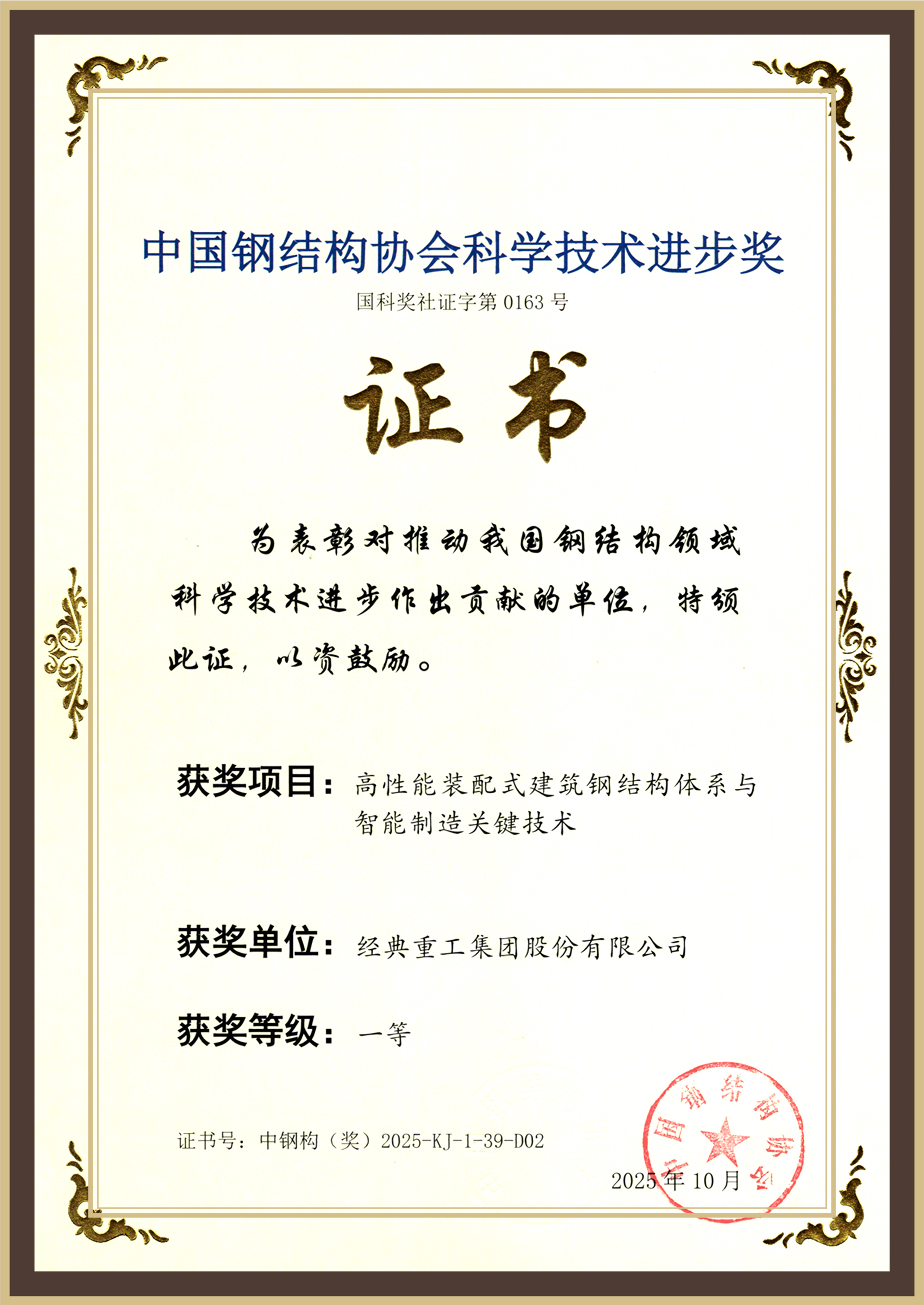 經(jīng)典集團(tuán)在中國鋼結(jié)構(gòu)協(xié)會成立四十周年紀(jì)念大會上榮膺“卓越貢獻(xiàn)獎(jiǎng)”,彰顯卓越貢獻(xiàn)與影響力。
